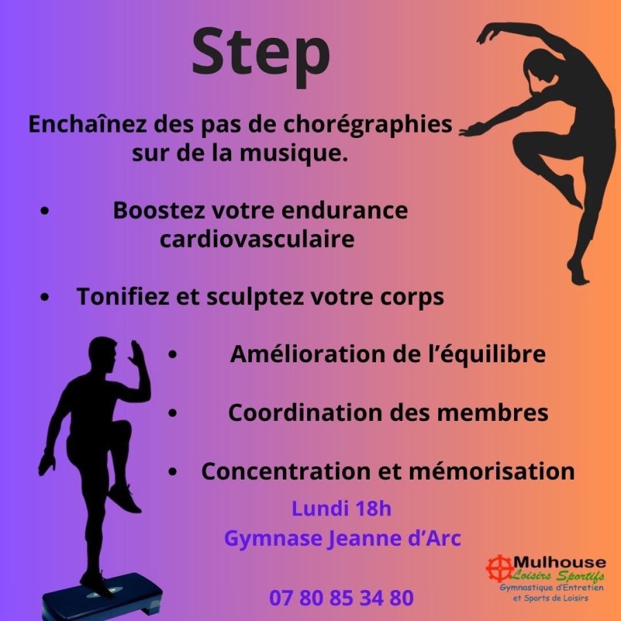 Le step est un cours cardiovasculaire où l’objectif est d’enchaîner des pas de chorégraphies sur de la musique.